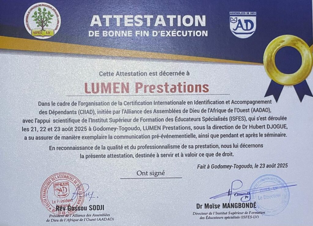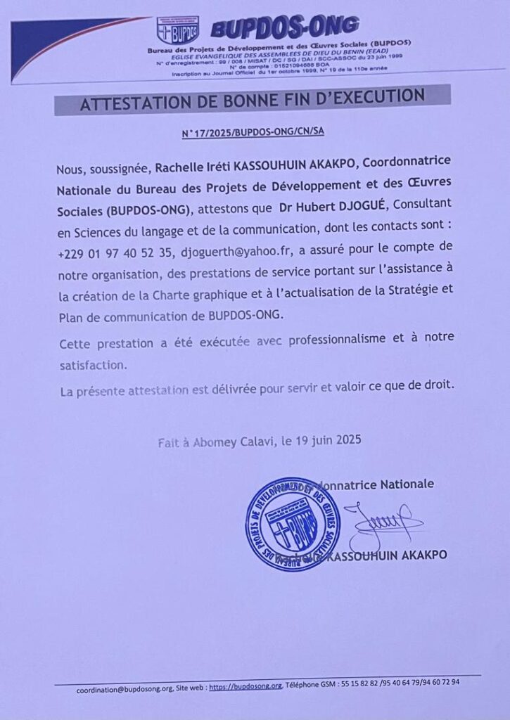 ATTESTATION DE BONNE FIN D’EXECUTION